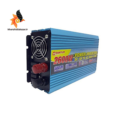 اینورتر خورشیدی 2600 وات کوانتوم یک مبدل شبه سینوسی با کیفیت مناسب است.اینورتر 2600 وات کوانتوم به نسبت اینورتر های تمام سینوسی از قیمت مناسبی برخوردار است و جزو اینورتر های ارزان قیمت بازار به حساب می آید.(کوانتوم یک مبدل ارزان قیمت است).